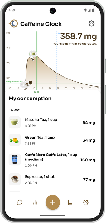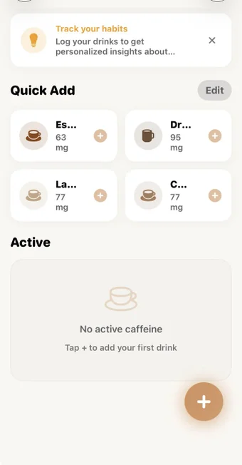 Sie können die Einstellungen der App anpassen, um Ihre persönlichen Faktoren und Lebensgewohnheiten zu berücksichtigen, einschließlich Stoffwechselgeschwindigkeit, Alter, Gewicht, Raucherstatus und andere relevante Details. Darüber hinaus können Sie praktische Widgets für den Startbildschirm hinzufügen, die eine schnelle Protokollierung Ihrer Getränke und eine einfache Verfolgung Ihrer täglichen Koffeinaufnahme ermöglichen. Diese Kombination aus Personalisierung und Zugänglichkeit macht das Management Ihrer Energielevels reibungslos und genau.